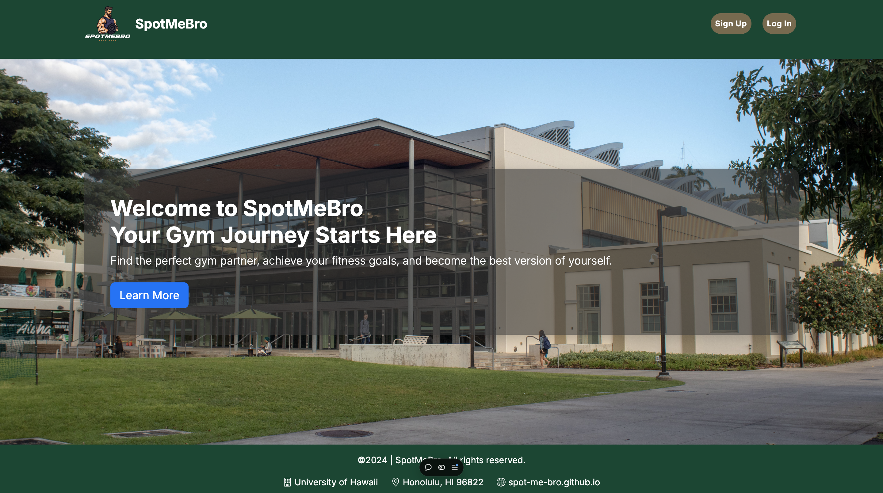 SpotMeBro is a web application designed to match users together to find workout partners. Additionally the app has a database of workouts managed by administrators that correspond to the style of workout the user selects. My contribution was widely spread, the majority of the time I was working on backend issues with our schema, figuring out how to properly get information into and out of our database and generally fixing issues that would arise.